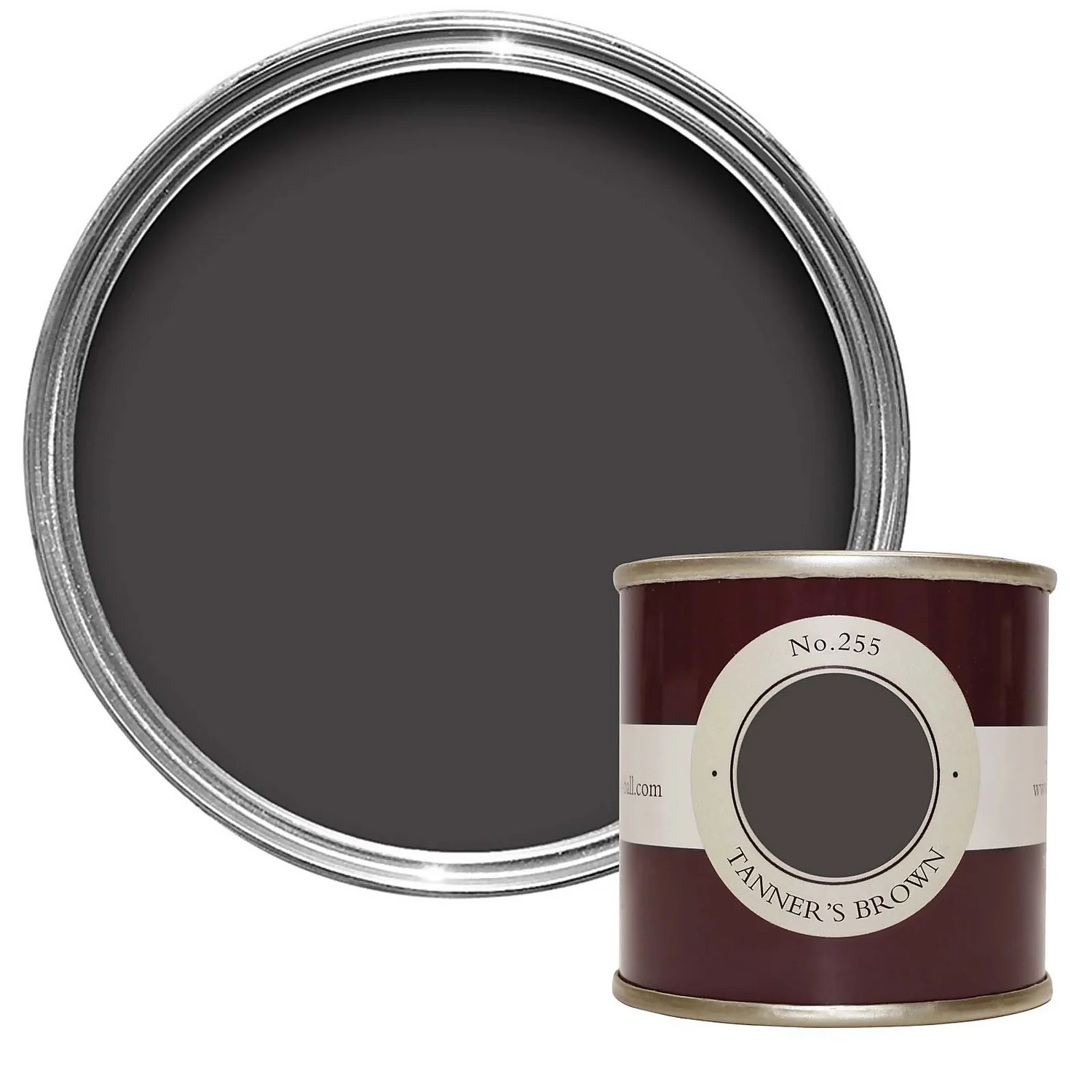 Tanner’s Brown is a strong dark brown that can appear almost black in certain lights. It’s a great alternative to a pure black to create a lower-contrast look, especially in well-lit rooms where its warm red undertones become more apparent.
